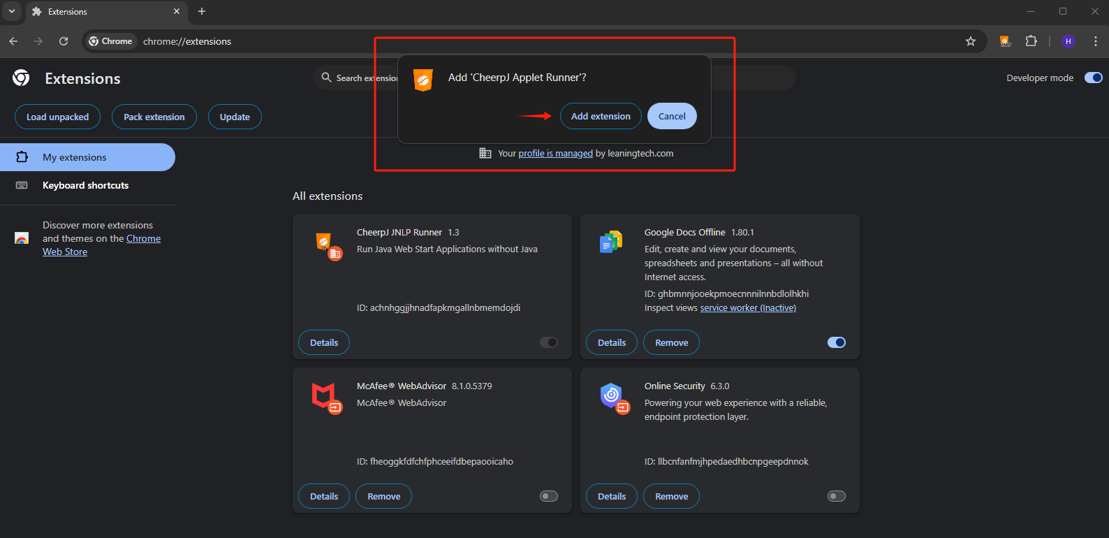 This tutorial will walk you through the steps to pack the CheerpJ Applet Runner extension in Chrome, making it ready for distribution and deployment, particularly useful in enterprise environments like deploying through Group Policy Objects (GPOs).