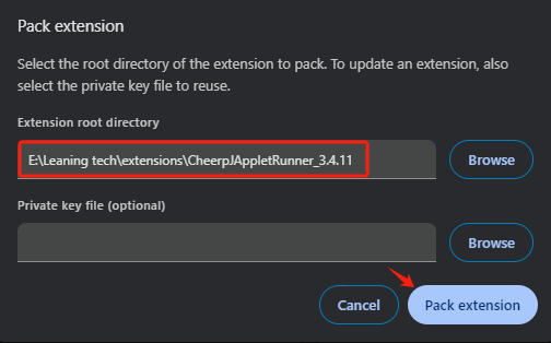 By following these steps, you will have successfully packed your CheerpJ Applet Runner extension for Chrome, ready for deployment or testing.